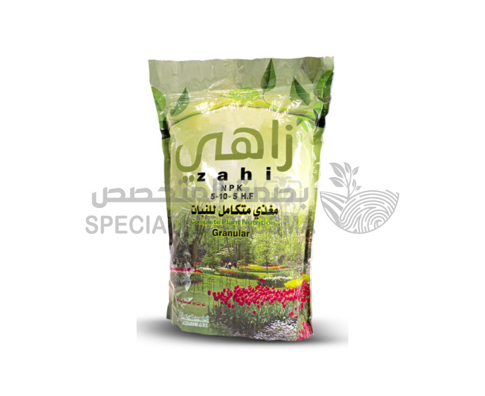 - سماد زاهي يحتوي على مزيج من العناصر الغذائية الرئيسية بتركيبة 5-10-5 بالإضافة إلى حمض الهيوميك والفولفيك.